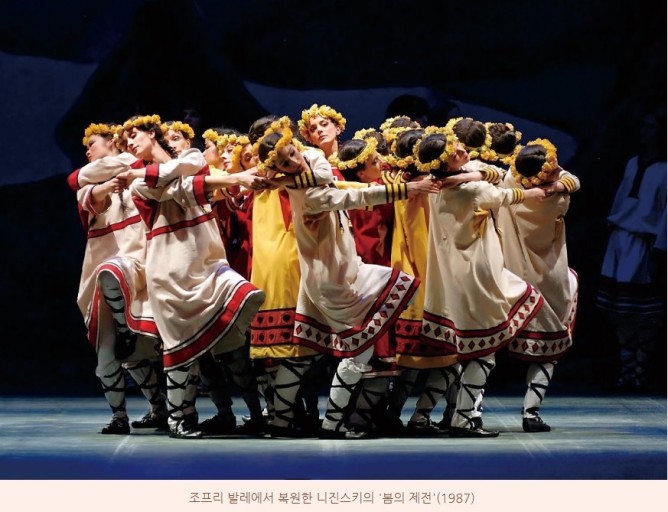 <봄의 제전>은 러시아 이교도들의 대지와 태양산의 찬미를 주제로 한 고대 작품으로 태양신 '아릴로'에게 제물로 바치기 위해 선택된 아름다운 여인이 죽기 전까지 의식을 치르는 내용이다. <봄의 제전>의 안무가 니진스키가 속해있던 발레뤼스는 정형화된 발레에서 벗어나 다양한 작품들을 시도했던 단체로 <봄의 제전> 역시 그 특징을 잘 볼 수 있는 작품이다. 영화 <샤넬과 스트라빈스키>라는 영화는 <봄의 제전>의 초연 당시의 상황을 그리며 시작된다. 영화 속에서 그려진 이 작품의 초연 당시 상황은 공연장 내에서는 관람객들의 야유가 쏟아져 나와서 무용수들이 음악에 집중을 할 수 없을 정도로 소란스러웠고, 니진스키가 직접 무대 뒤에서 박자를 맞춰줘서 공연을 마무리할 수 있었다. 그리고 공연장 내의 소란 정도가 너무 심해서 경찰까지 출동했던 장면까지 그려지고 있다.