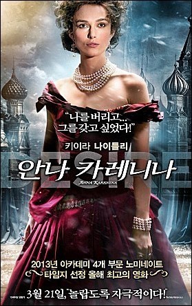 영화 <안나 카레니나>는 러시아의 세계적인 대문호인 레프 톨스토이의 동명의 소설 <안나 카레니나>를 바탕으로 만들어진 영화이다. 세계적인 문학작품으로 손꼽히는 소설답게 이 소설은 여러 명의 감독에 의해서 영화로 탄생되었다. 오늘 소개할 영화는 조 라이트(Joe Wright) 감독의 작품으로 2012년 우리나라에 개봉하였다. 이전 작품들에서 비비안 리(Vivien Leigh), 그레타 가르보(Greta Garbo), 소피 마르소(Sophie Marceau)가 주인공인 안나 카레니나 역에 캐스팅되면서 주목받은 바 있으며 2012년 작품 조 라이트(Joe Wright)감독의 영화에서는 영화 <캐리비안의 해적>, <오만과 편견>등의 작품에 출연하며 현재까지 활발한 작품 활동을 이어가고 있는 키이라 나이틀리(Keira Knightly)가 안나 카레니나 역에 남자 주인공으로는 주 드로(Jude Law, 알렉시 카레닌 역), 애런 존슨(Aaron Johnson, 브론스키 역)이 캐스팅 되었다. 소설 <안나 카레니나>의 첫 장은 "행복한 가정은 모두 비슷한 이유로 행복하지만 불행한 가정은 저마다의 이유로 불행하다."라는 문장으로 시작된다. 영화 역시 이 문장을 시작으로 영화가 시작된다. "행복한 가정은 모두 비슷한 이유로 행복하지만 불행한 가정은 저마다의 이유로 불행하다."라는 문장에 영화 <안나 카레니나>의 내용이 모두 담겨있다는 것을 영화가 마무리 될 때 알게된다.